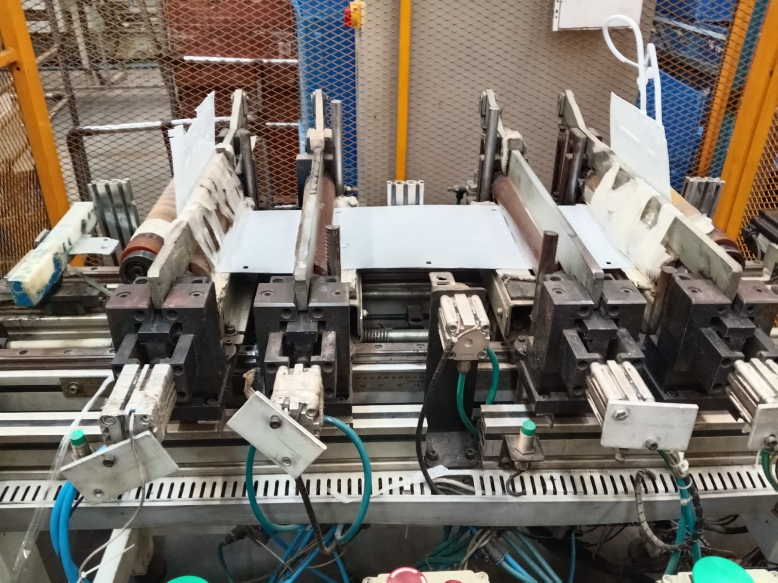 • Evaporator tube bending machine designed for forming and shaping evaporator coils used in air conditioners and refrigeration units. The machine uses precision bending tools and pneumatic actuators to bend aluminium or copper tubes into the required evaporator shape. The system is integrated with safety guarding and controlled through PLC-based automation to ensure accurate and repeatable bending operations.